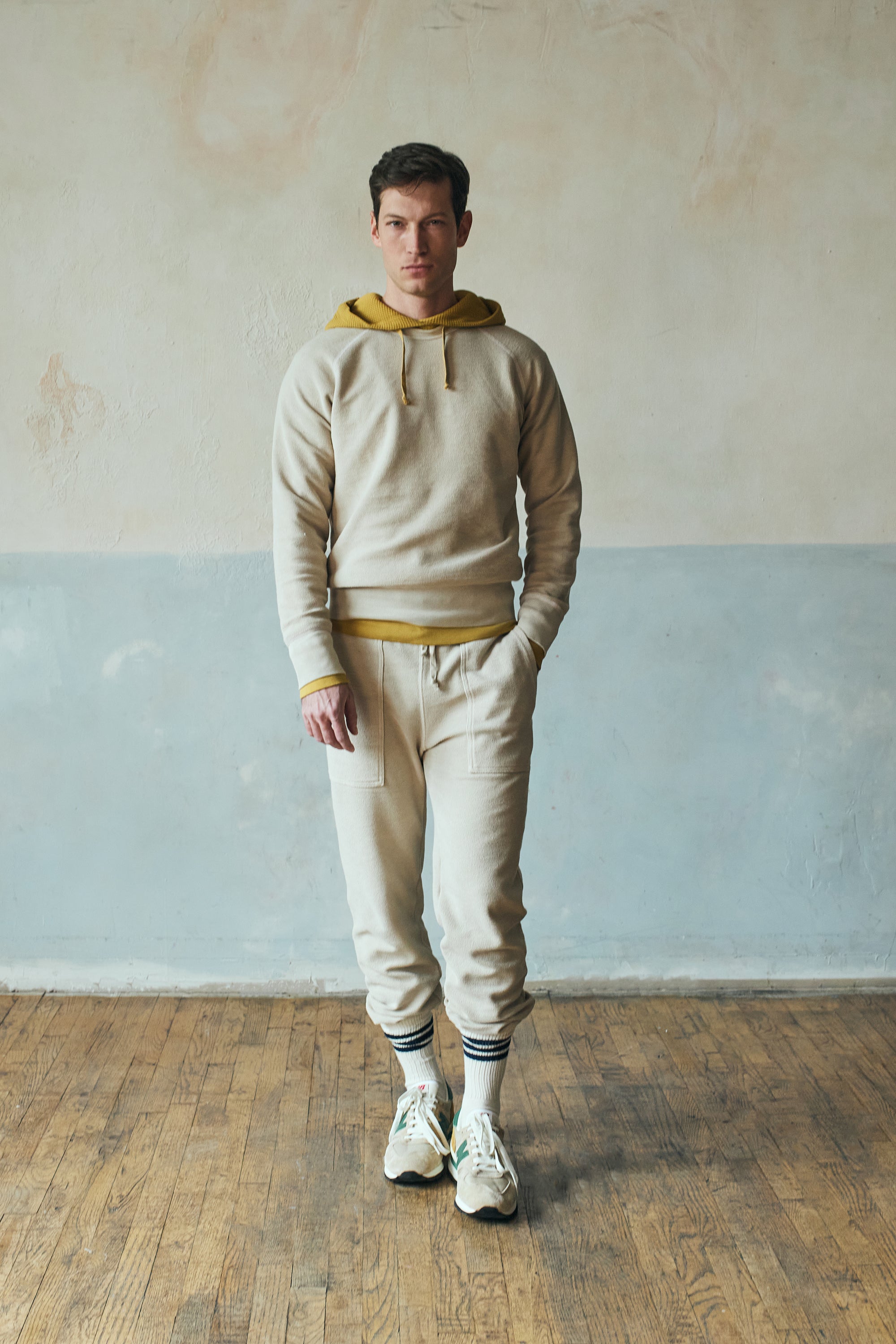 A new playful take on classic sweats, the terry knit dyes nicely, highlighting high and low color variations.