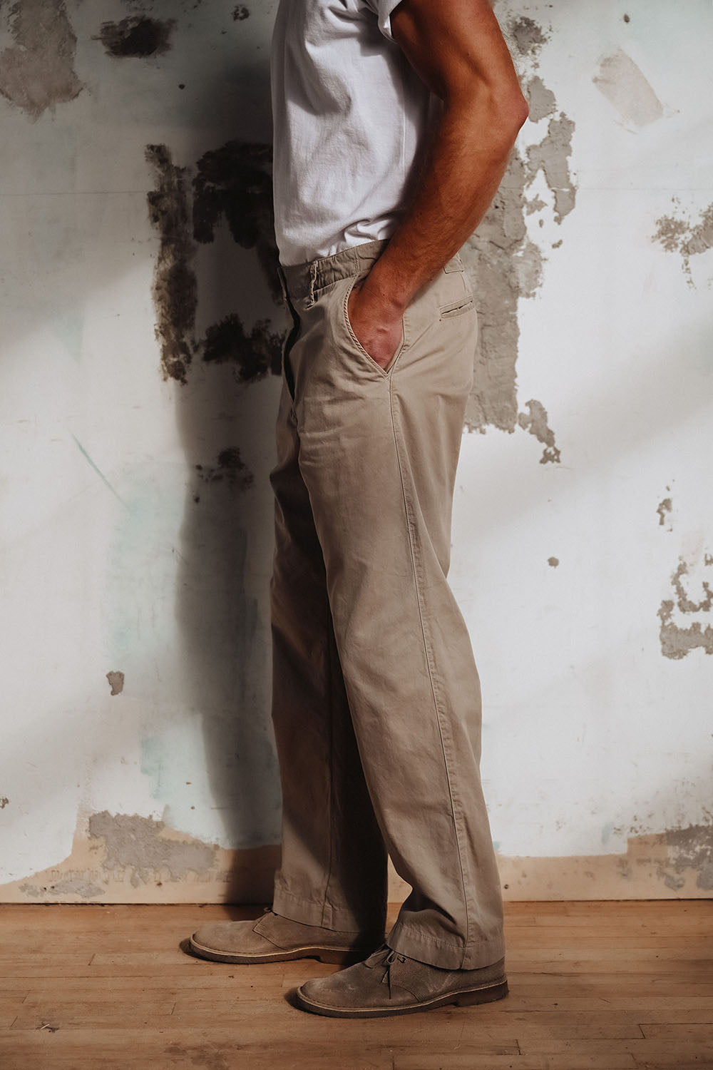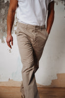 The Weekend Chino—a contemporary and comfortable addition to your wardrobe. This new wide-leg pant features a stovepipe straight leg from the hip to the bottom opening, providing a modern and relaxed silhouette.