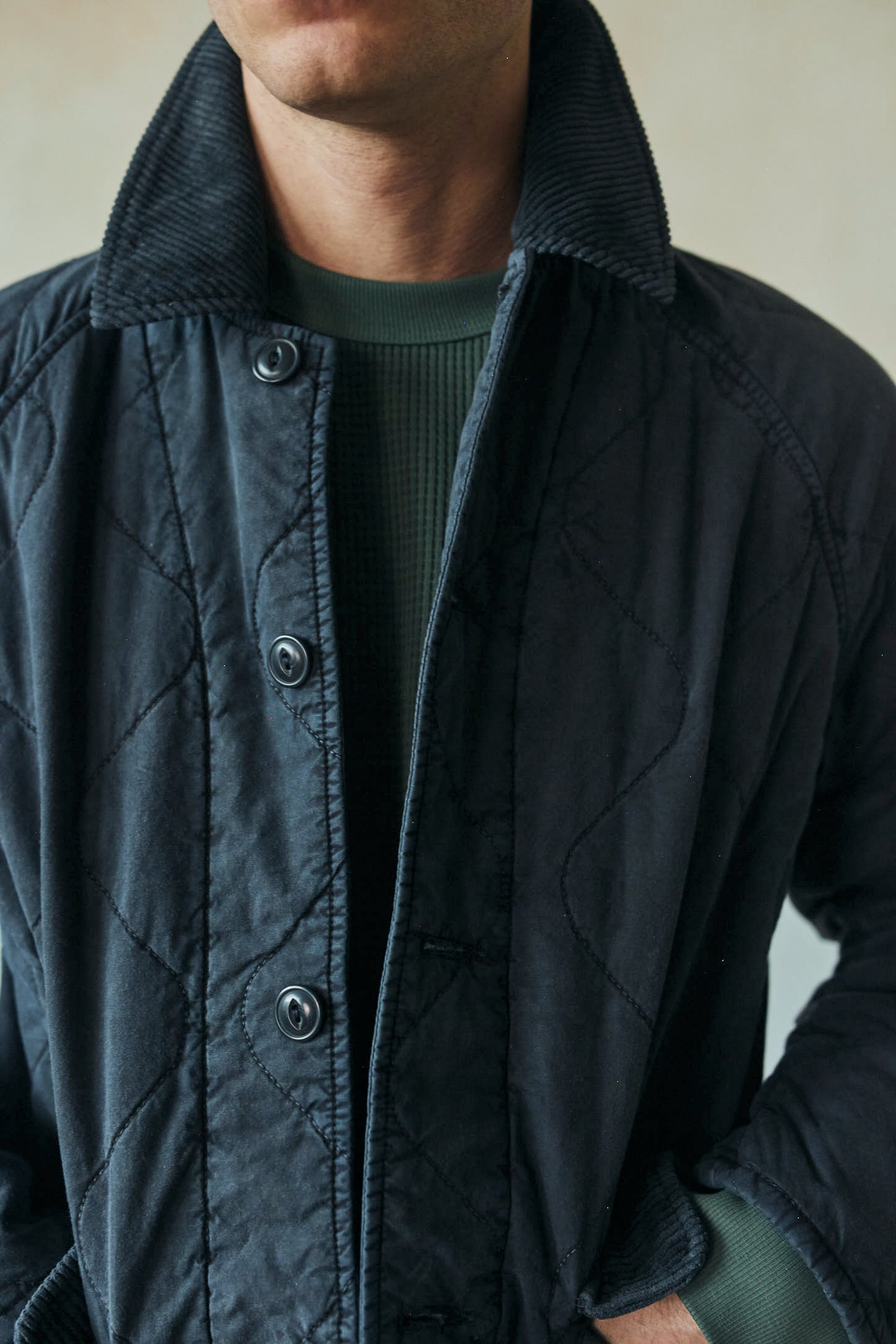 The newest addition to our quilted family, this chore jacket blends classic utility with modern style. Designed with raglan sleeves and a button-front closure, it features mixed-media detailing with corduroy at the collar and pocket flap for added texture and durability. A versatile layer that delivers both function and effortless style.